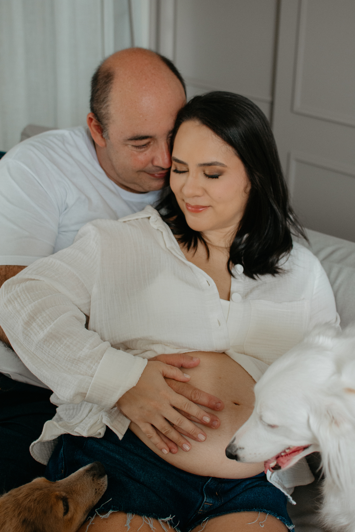Fotografo Monique desde que ela tinha apenas sua filha de quatro patas Luna. Depois fizemos um ensaio super especial com Volpe, o bonitão. Quando ela ficou grávida, logo fizemos o ensaio com a mais nova integrante da família ainda no forninho!